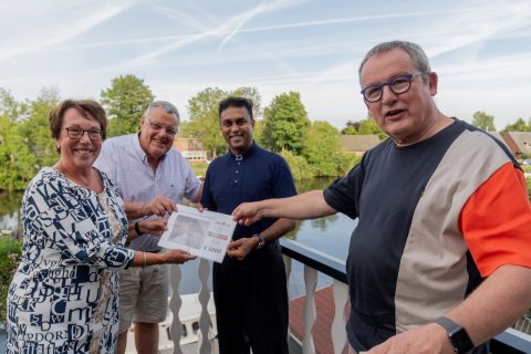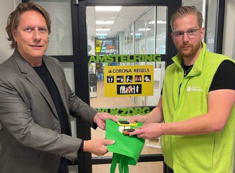 On behalf of the Ameide and Tienhoven first aid association, Krijn de Vroome presented a resuscitation manikin to the chairman of Medi-Aid Martin Joziasse.